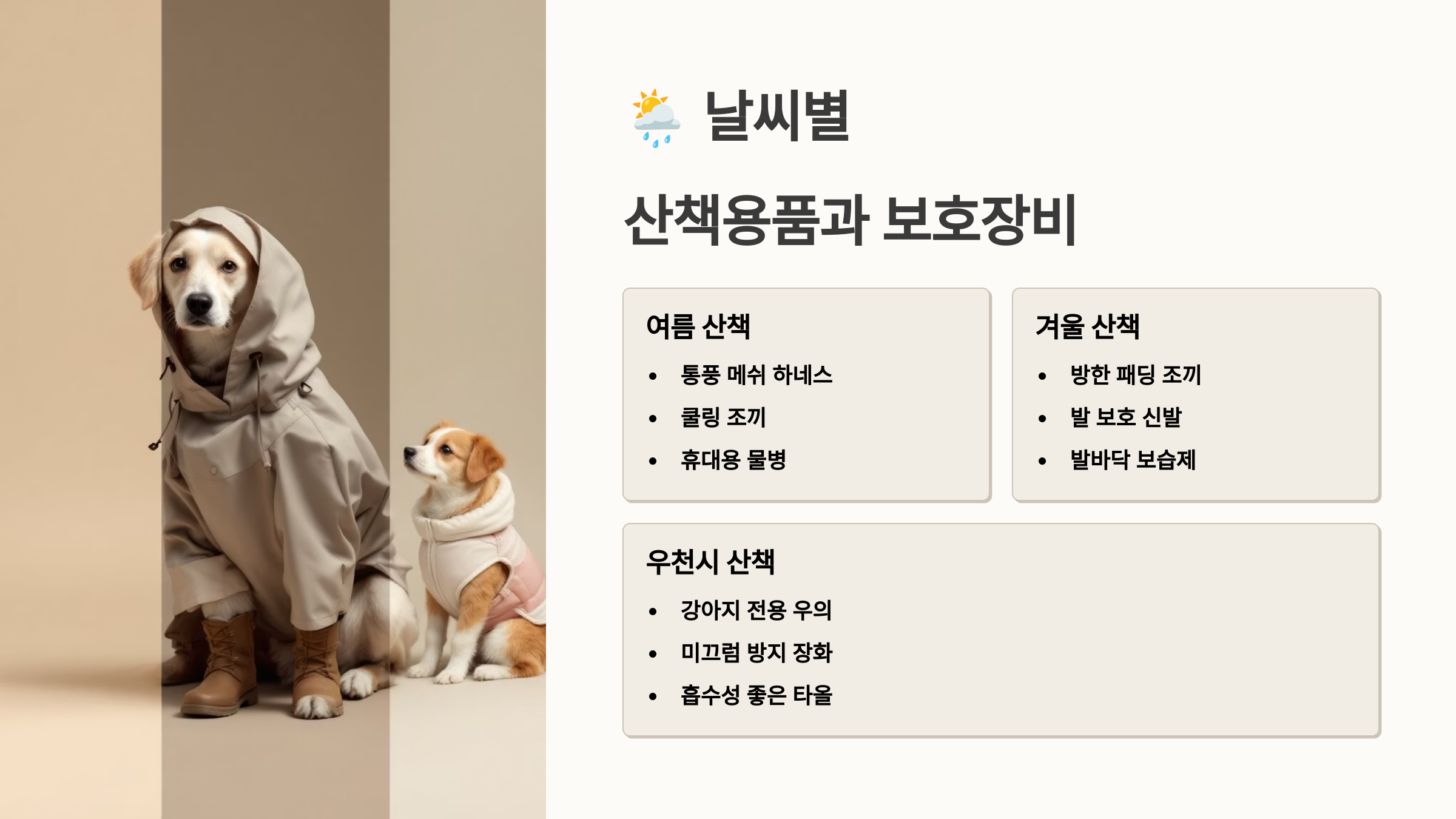 🌦️ 날씨별 산책용품과 보호장비