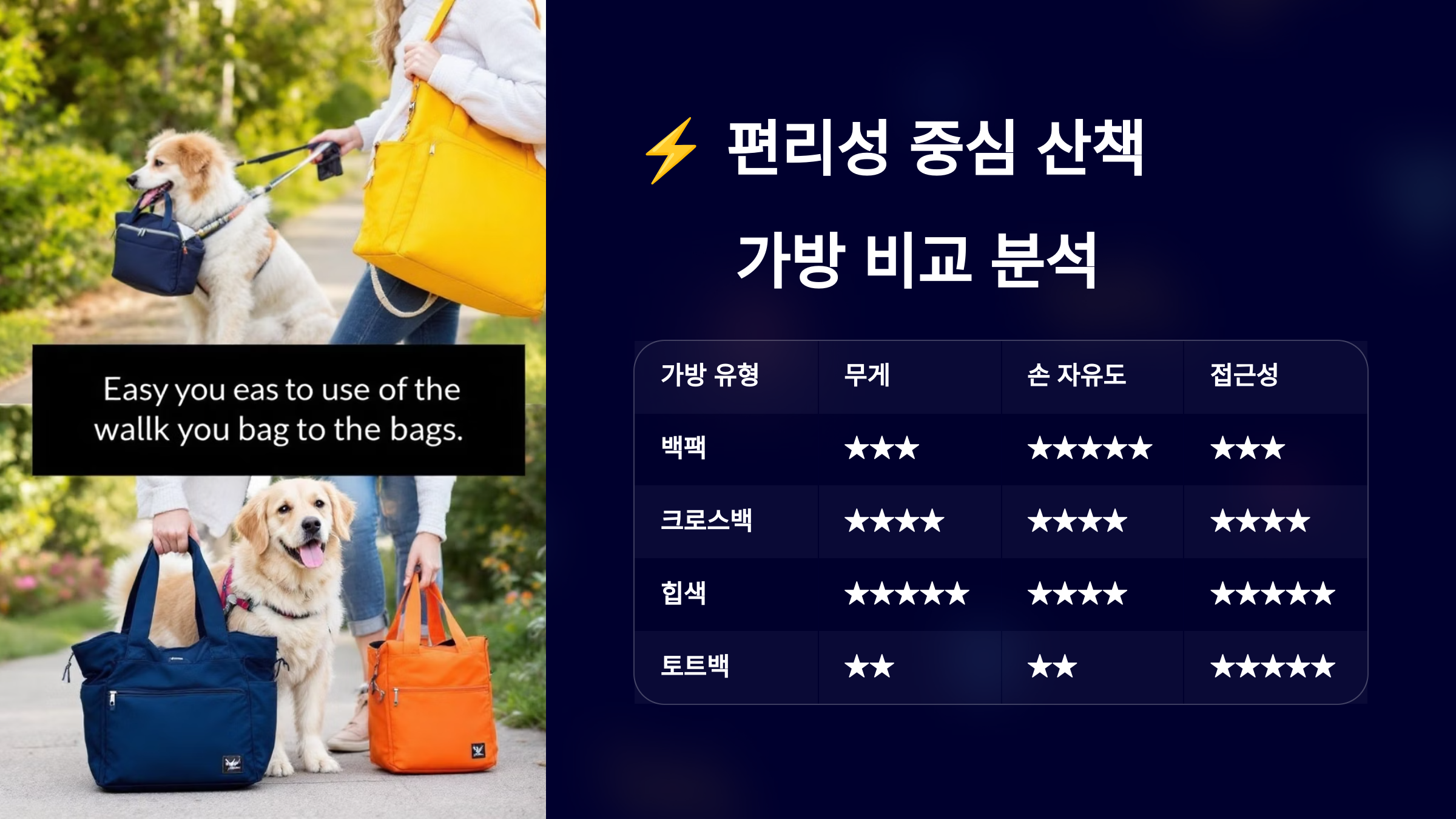 ⚡ 올바른 산책 가방 선택이 중요해요!