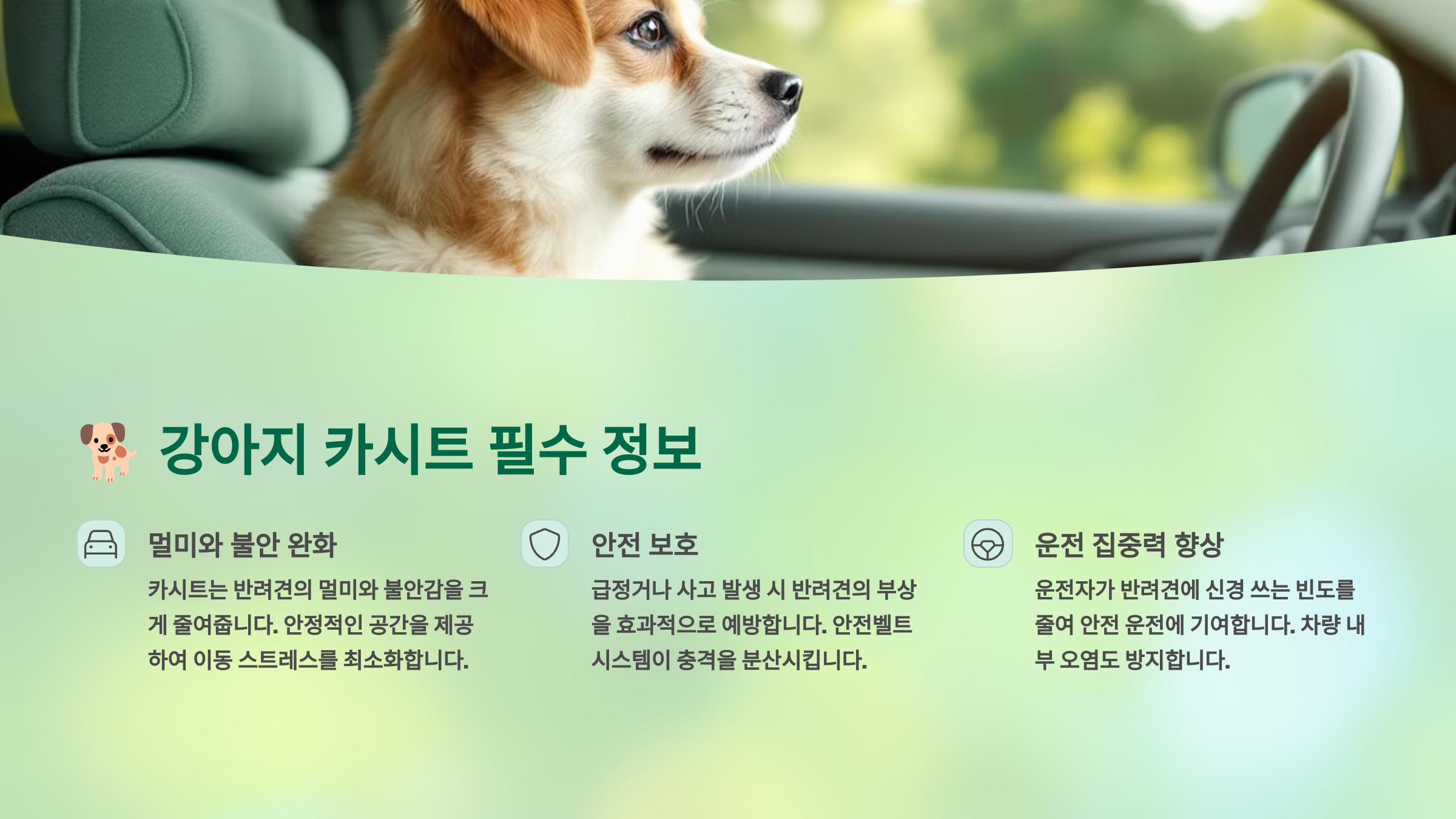 강아지 카시트는 단순히 편의를 위한 용품이 아니라 반려견의 생명을 보호하는 중요한 안전장치예요. 급정거나 사고 상황에서 강아지가 다치지 않도록 보호해주는 것은 물론, 운전자의 주의력 분산을 방지해서 교통사고 위험도 줄여줄 수 있어요. 내가 생각했을 때 강아지 카시트는 선택이 아닌 필수템인 것 같아요. 특히 장거리 여행이나 정기적인 병원 방문이 있다면 더욱 중요하죠.