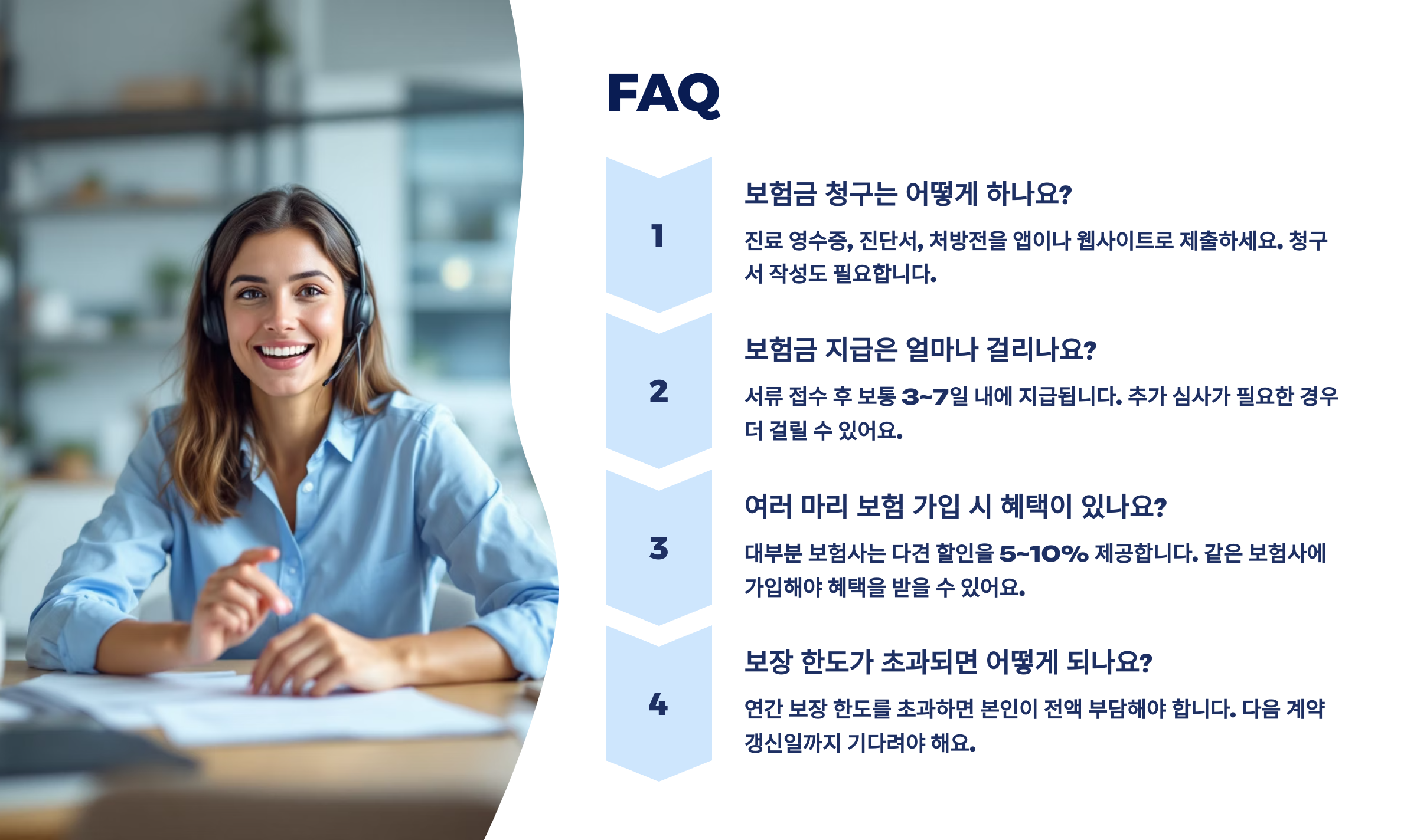 이제 정말 필요한 항목만 골라서 내 반려견에게 맞는 보험을 선택할 수 있는 준비가 됐을 거예요! 다음은 가장 궁금해하는 질문들을 정리한 FAQ 섹션으로 넘어갈게요! ❓