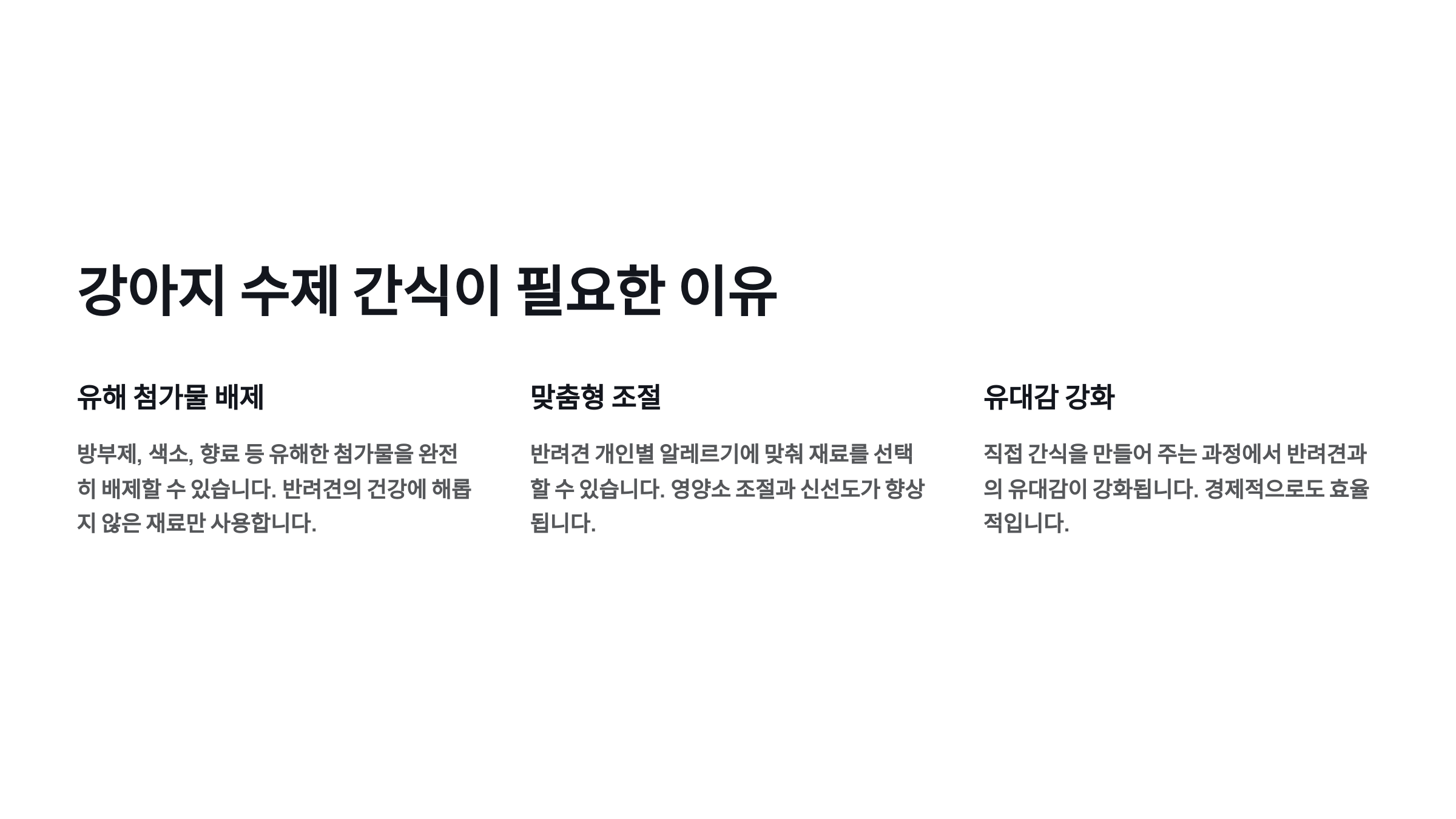그리고 중요한 건 관계 형성이에요. 간식을 만드는 과정부터 급여하는 순간까지, 강아지와의 유대감이 더 깊어져요. 보호자의 손에서 직접 나온 간식은 강아지도 더 잘 기억하고, 반응도 좋아져요 🤗