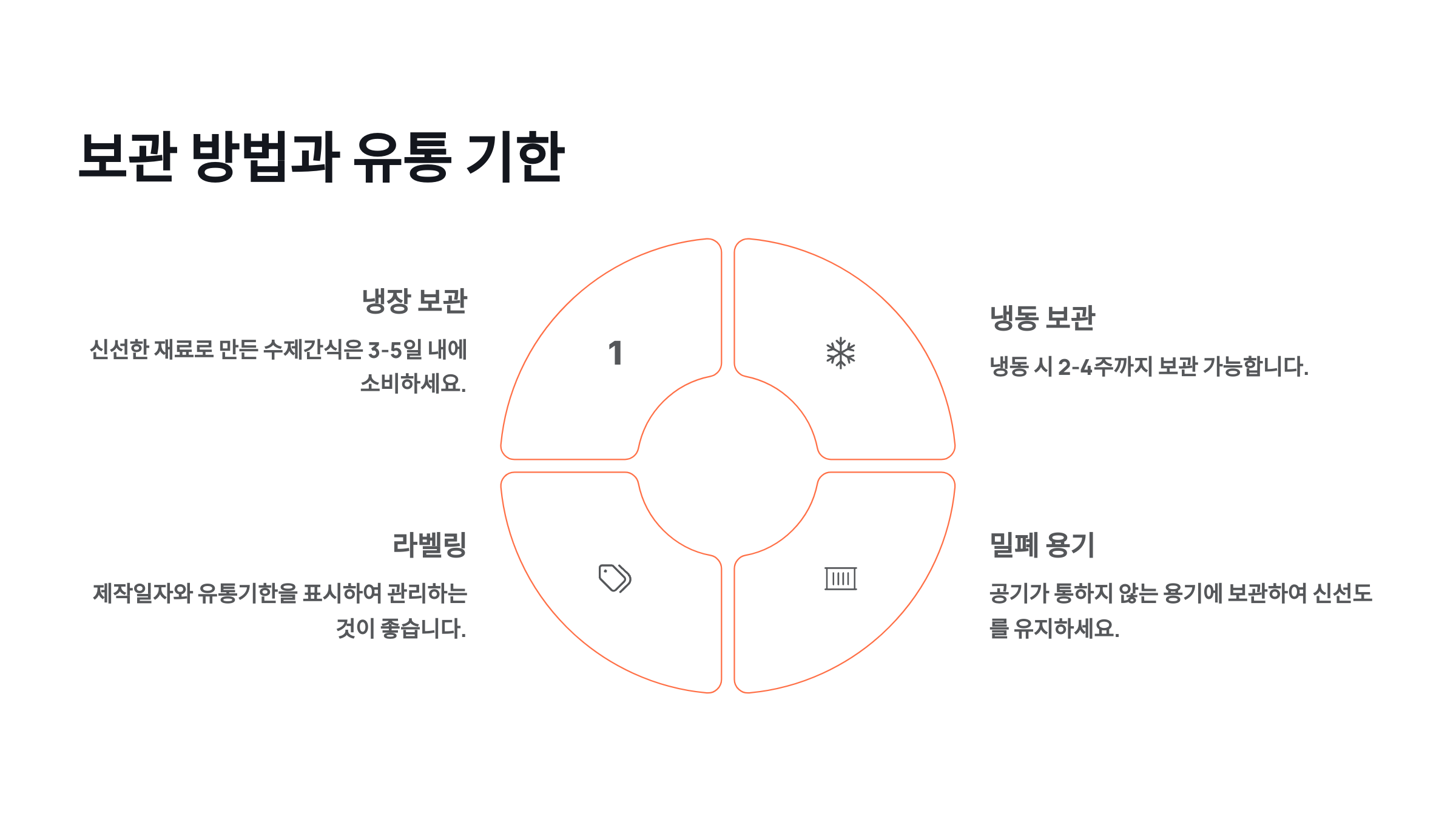 보관 시 꼭 밀폐용기나 진공팩을 사용하세요. 외부 공기와 접촉하면 금방 마르거나 상할 수 있어요. 지퍼백을 사용할 땐 공기를 꼭 빼고 밀봉해주는 게 중요해요 🧴