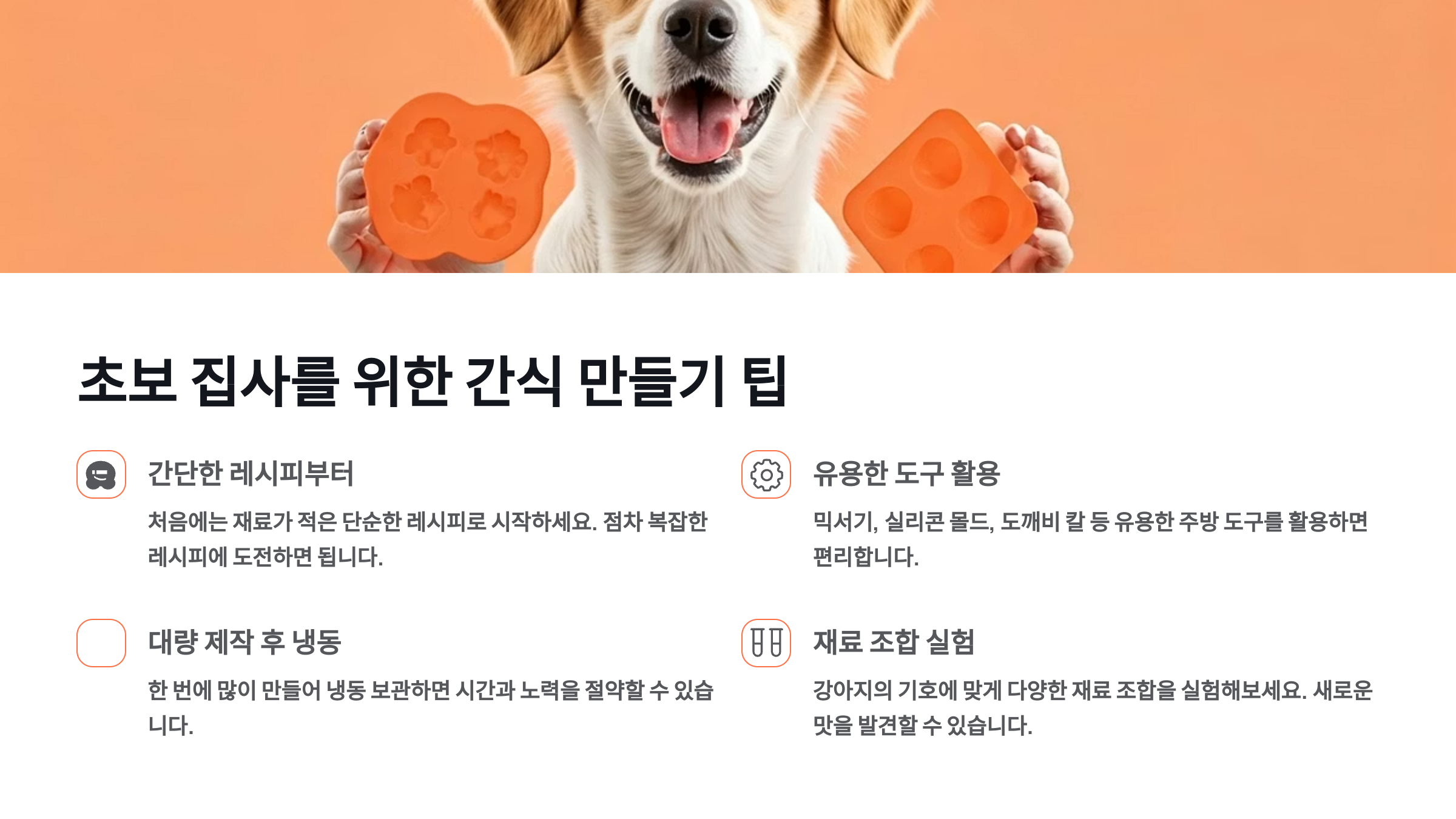 처음 수제 간식을 만드는 집사라면, 모든 게 낯설고 어렵게 느껴질 수 있어요. 하지만 걱정 마세요! 몇 가지 기본 팁만 기억하면 누구나 쉽게 시작할 수 있어요 🐾