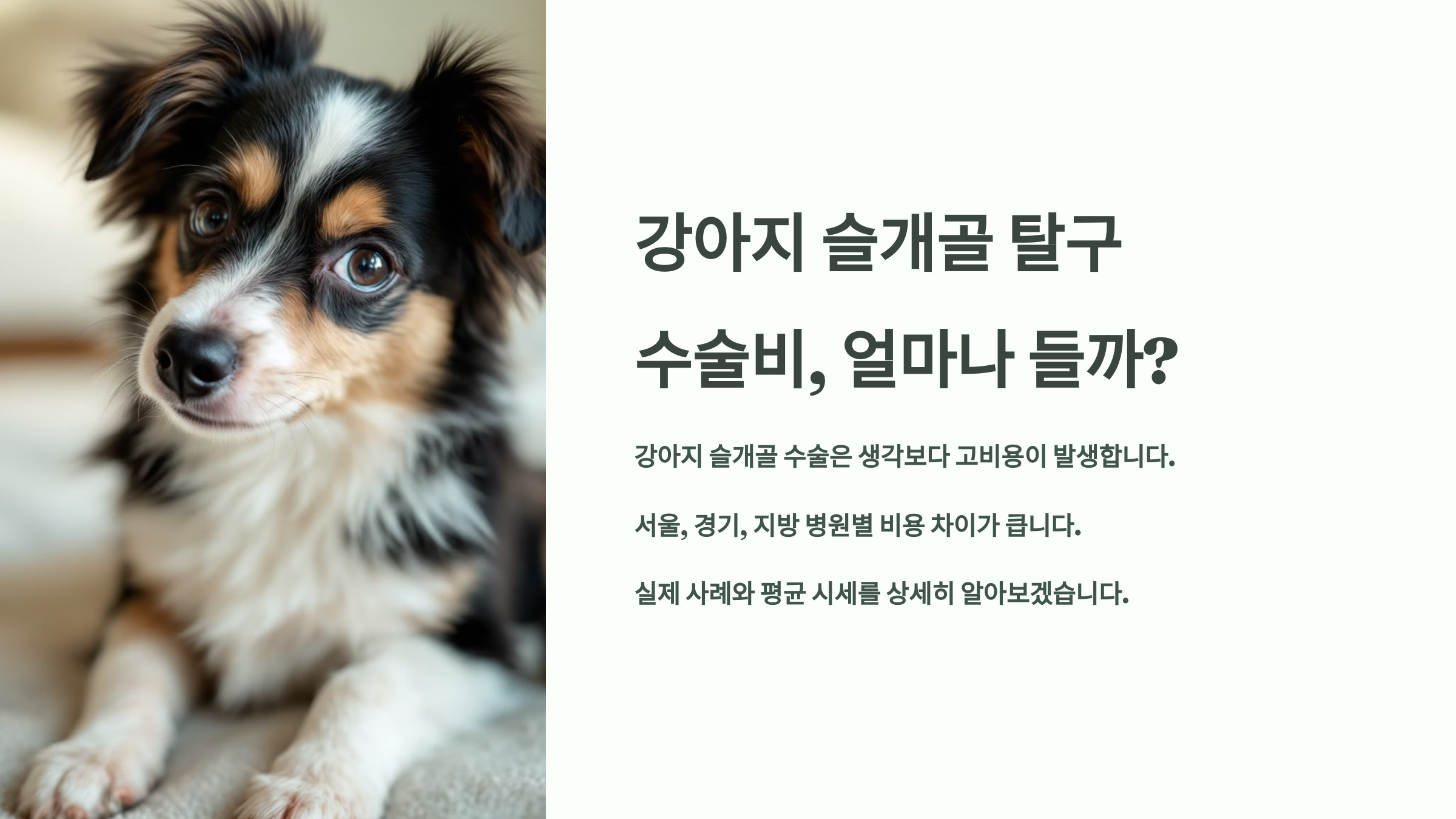 수술을 고려하는 시점이 되면 보호자 입장에서는 가장 먼저 비용 걱정이 들죠. 수술비가 얼마나 드는지, 지역별로 얼마나 차이나는지, 어디서 해야 할지 막막한 경우가 많아요.