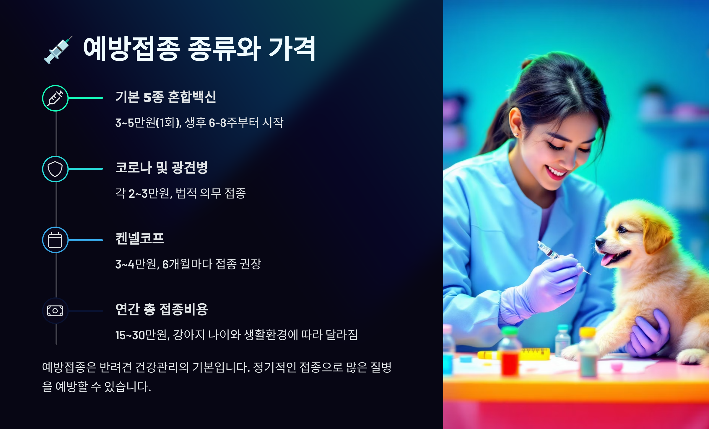 기본 건강검진을 잘 해두면 나중에 큰 질병을 미리 막을 수 있어요. 다음 섹션에서는 예방접종 종류와 가격에 대해 자세히 알려드릴게요! 💉