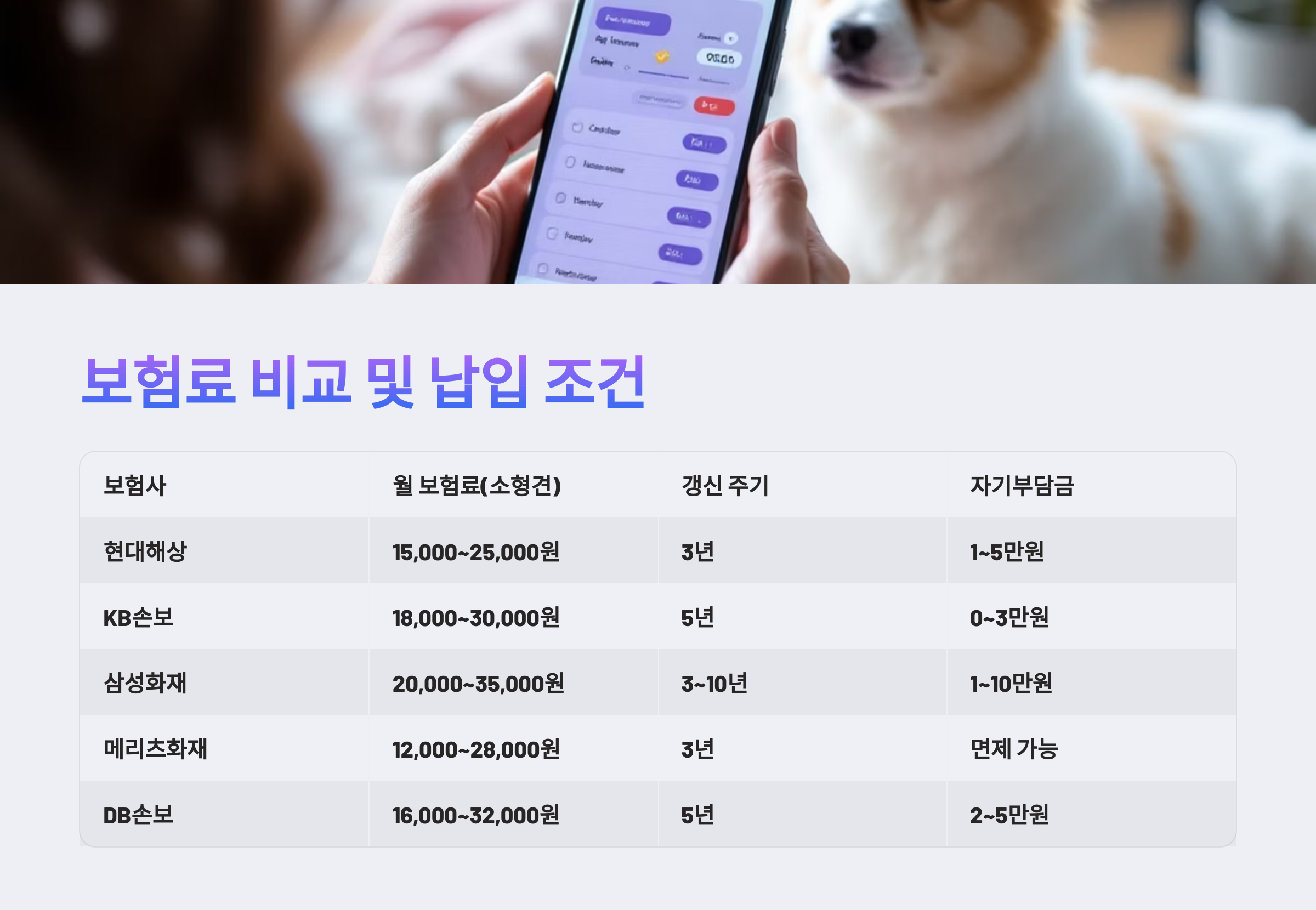 📌 보험료는 강아지 품종, 나이, 중성화 여부에 따라 달라질 수 있어요. 위 표는 평균적인 기준이니, 실제 견종 입력 후 견적 비교는 필수!