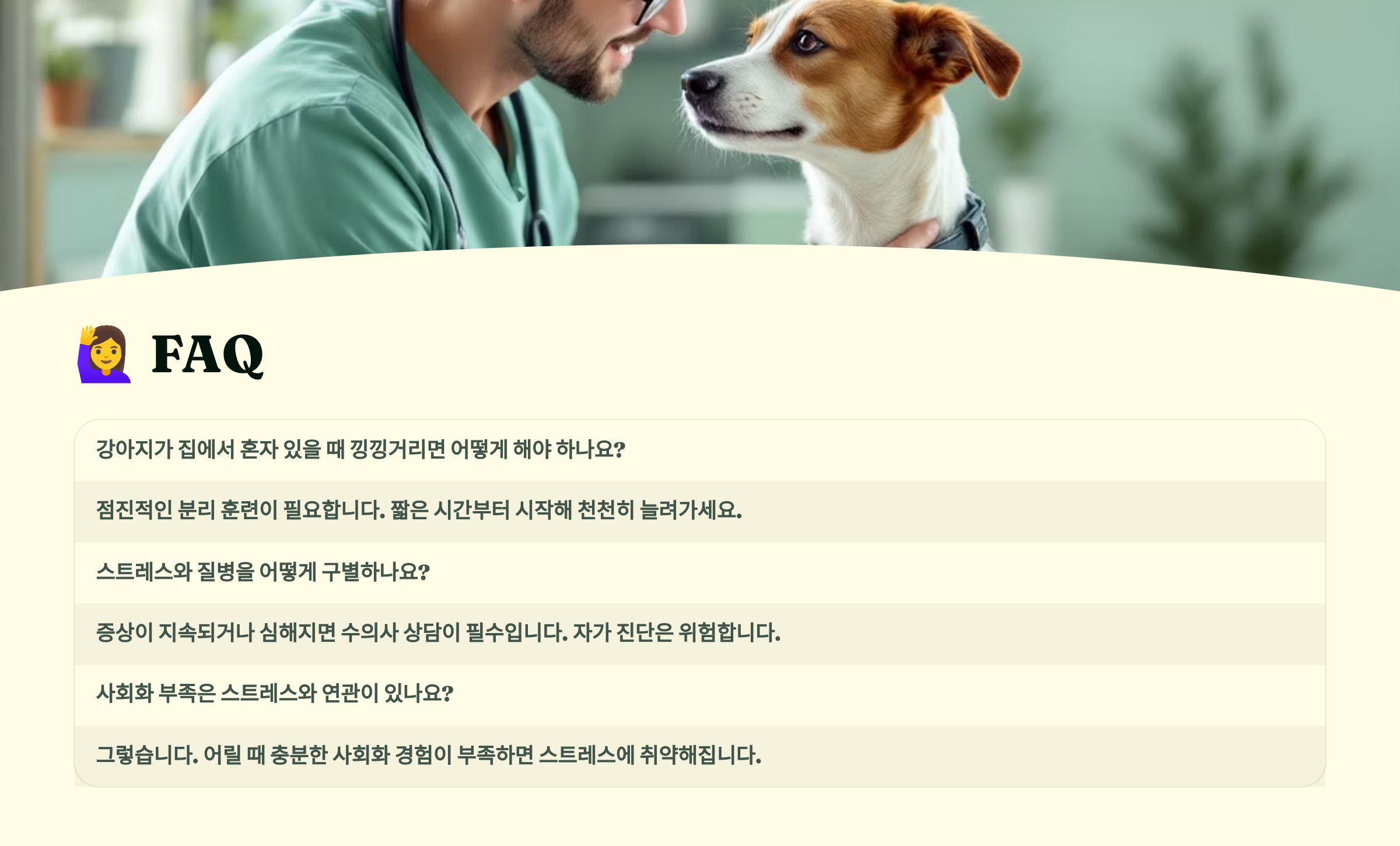 📌 가장 중요한 건 지속적인 관심과 작은 신호에 대한 민감함이에요. 강아지는 보호자가 보내는 감정도 그대로 느끼기 때문에 함께 안정된 마음을 유지하는 것이 가장 큰 예방책이죠. 🧘♀️🐶