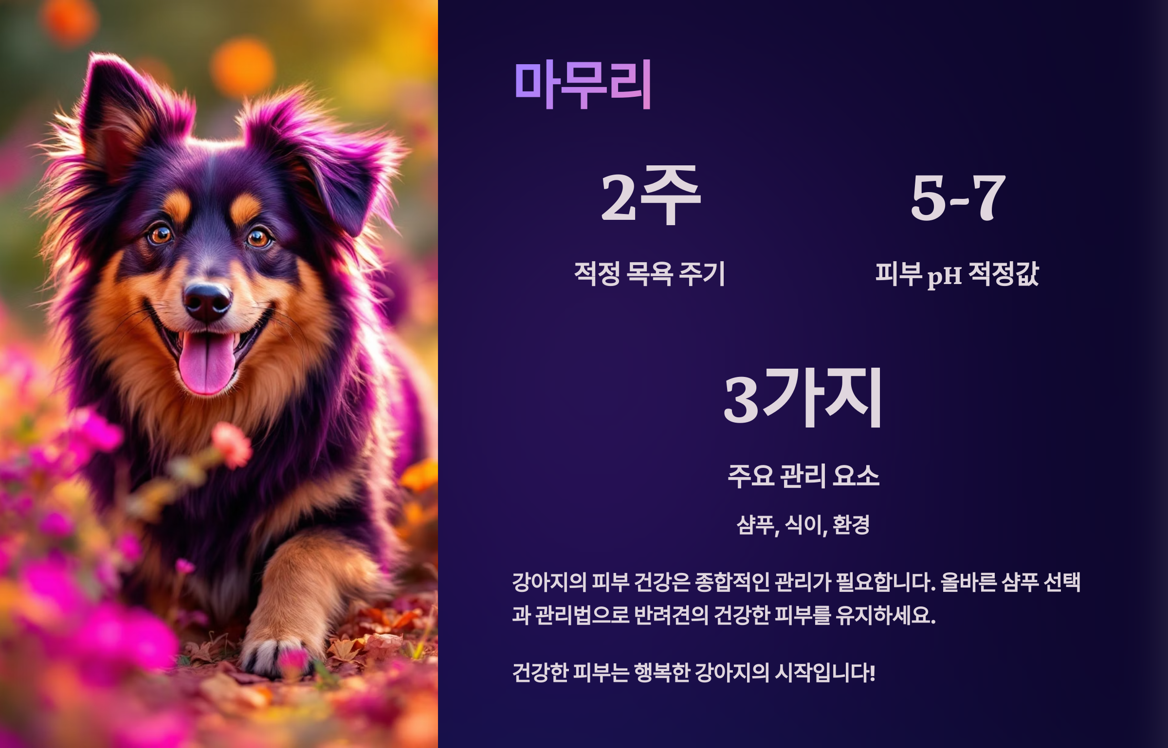 피부병은 예방이 치료보다 훨씬 쉽고 경제적이에요. 적절한 샴푸 선택부터 시작해서 체계적인 관리로 우리 아이의 건강한 피부를 지켜주세요! 🛡️