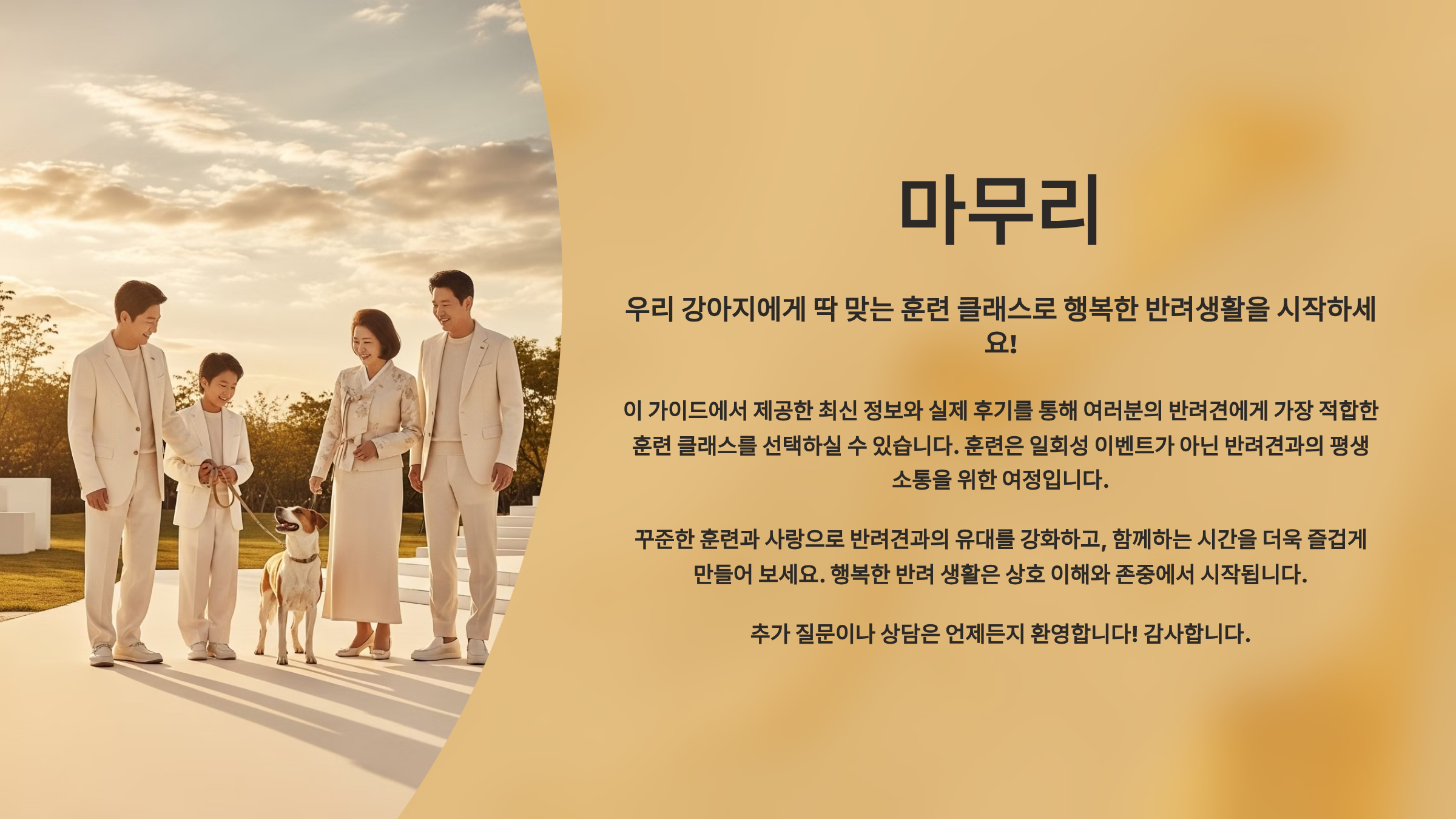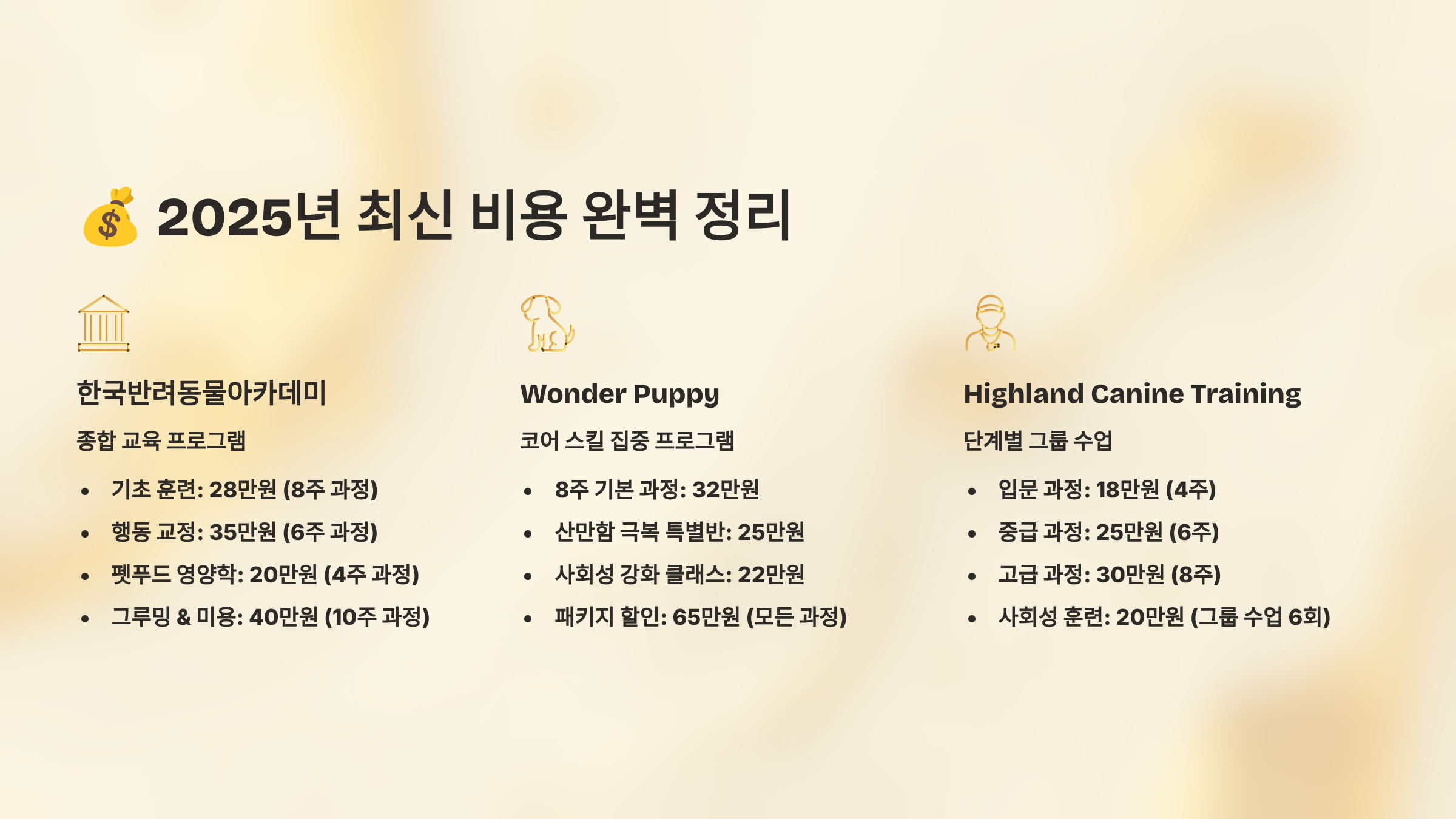 💰 평균 훈련 기간 3개월, 비용 50-100만원으로 평생 행복한 반려생활!