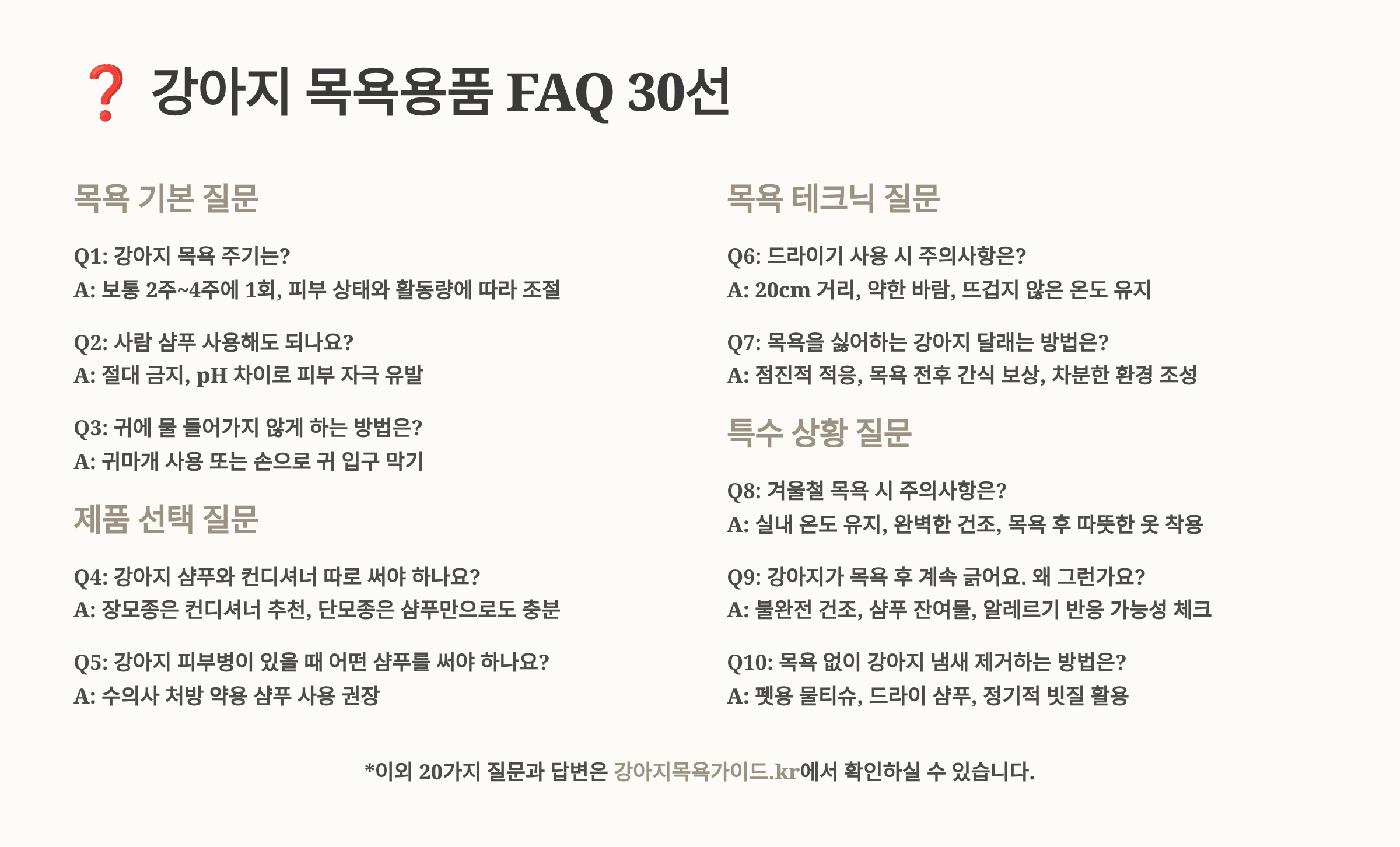 본 글에서 제공하는 정보는 일반적인 참고용이며, 개별 강아지의 특성에 따라 결과가 다를 수 있습니다. 피부 질환이나 알레르기가 있는 경우 반드시 수의사와 상담 후 제품을 선택하세요. 제품 사용 시 발생하는 문제에 대해 작성자는 책임지지 않으며, 모든 제품은 사용 설명서에 따라 올바르게 사용하시기 바랍니다. 가격 정보는 2025년 1월 기준이며 변동될 수 있습니다.